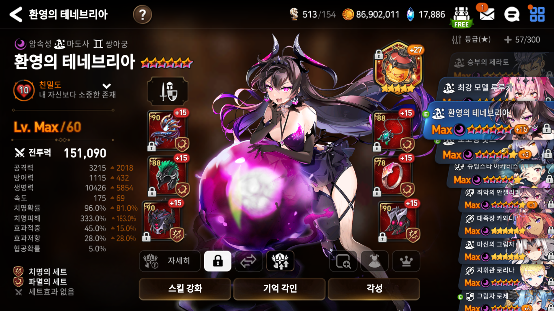 이미 고인물에 캐릭풀이 많이 갖춰진 실레나 유저시라면 환테네가 조금 더 좋을 수 있습니다.