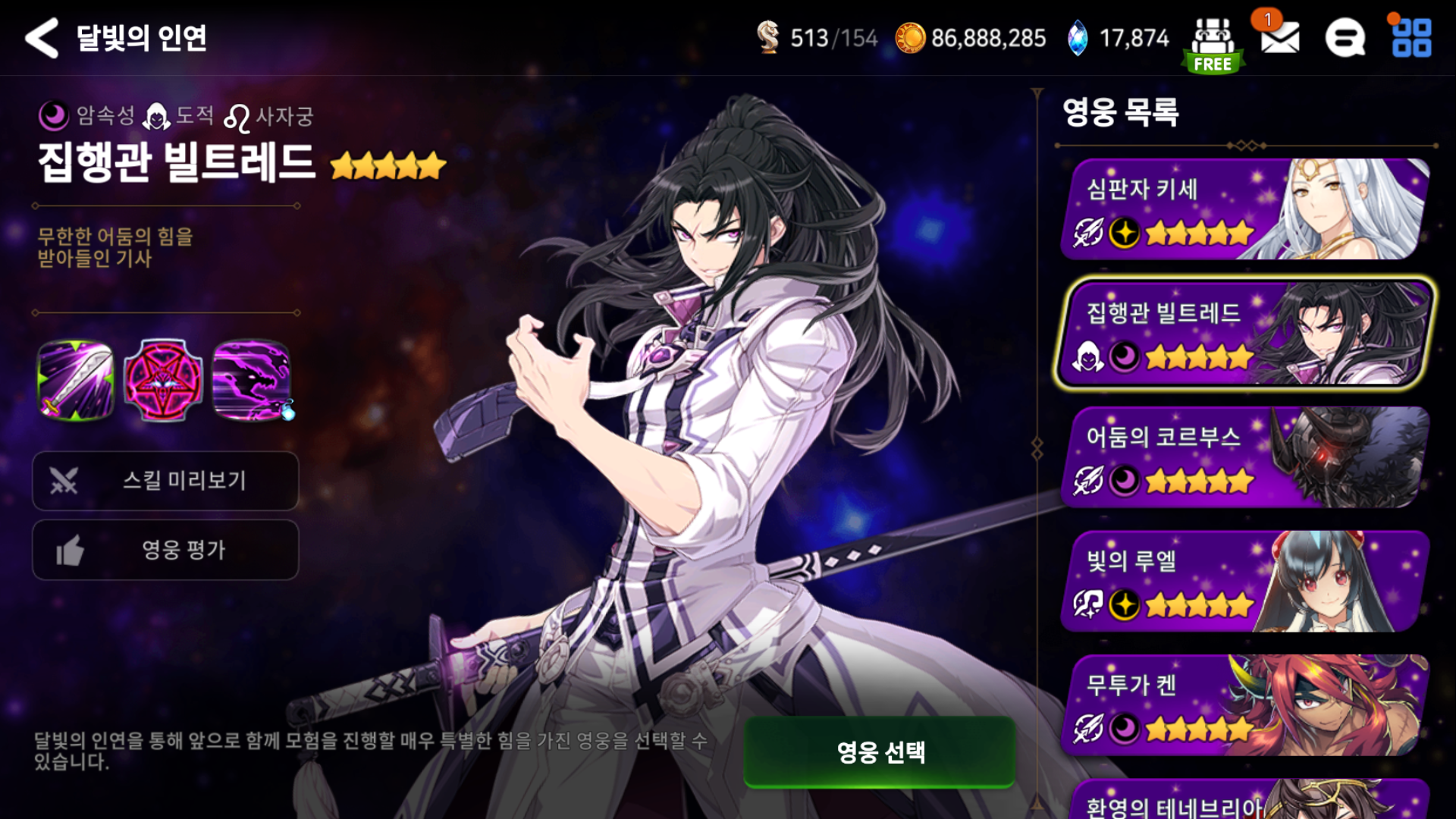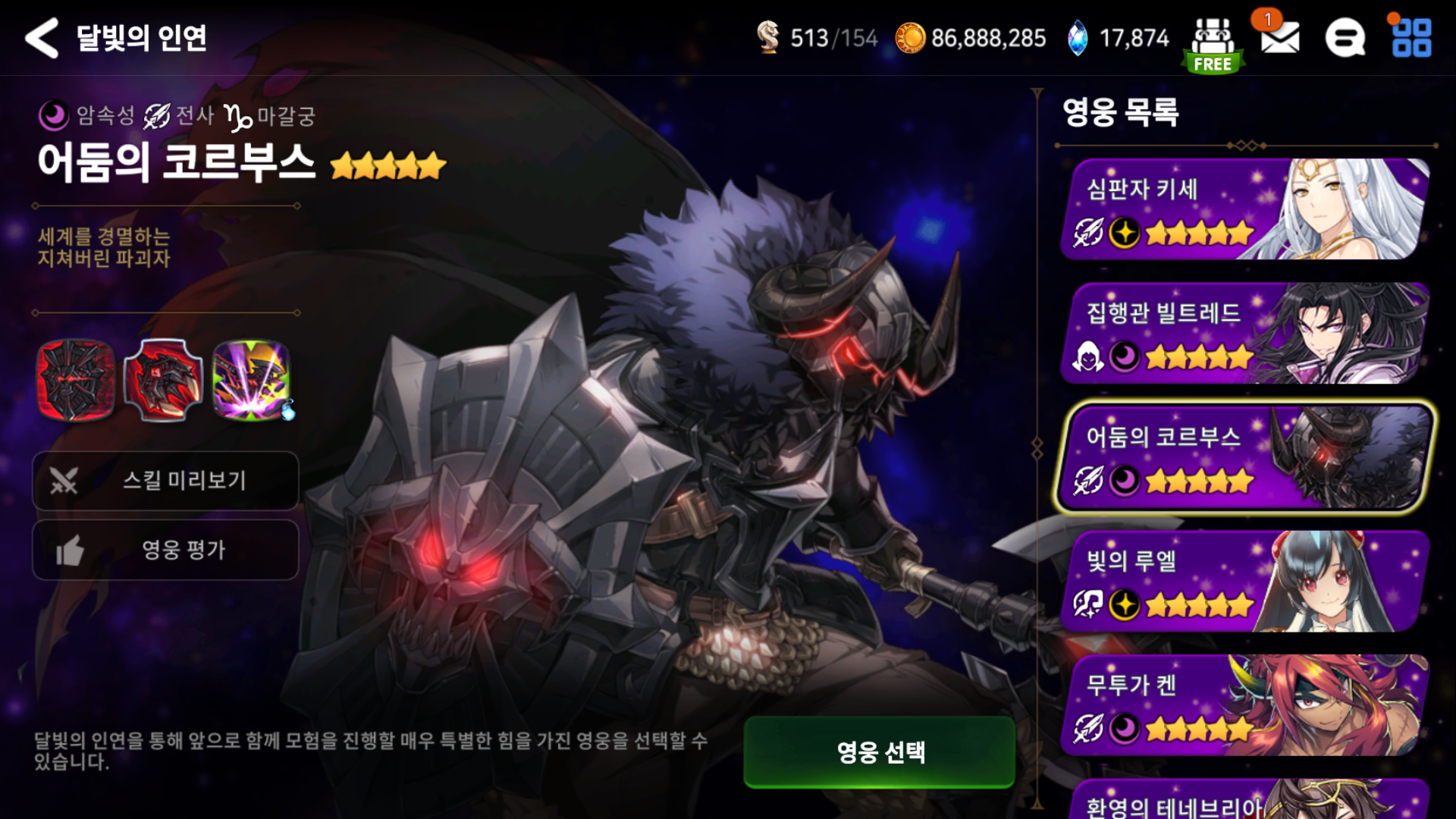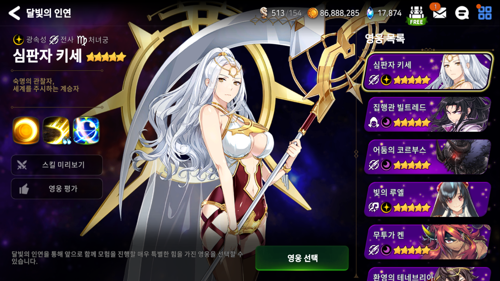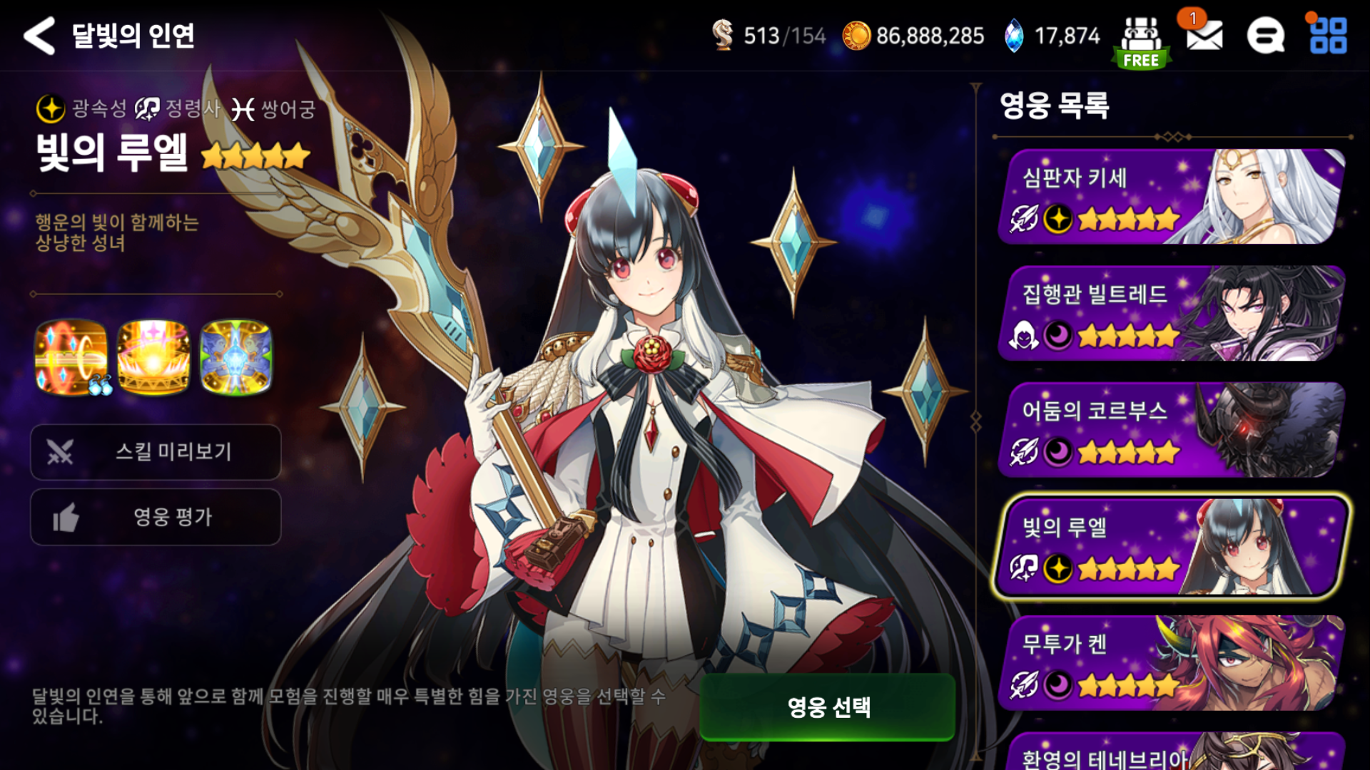 달빛의 인연은 초반 스토리에 나오는 월광 6영웅 중 하나를 선택하여