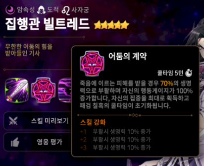 2스 패시브인 어둠의 계약은 캐릭이 죽게 되면 혼자 부활하여 집중을 모두 쌓고