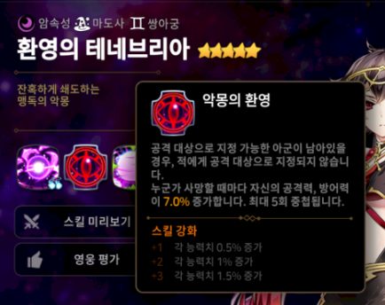 설명: 기사단전에서 아주 강한 면모를 보이는 영웅으로 치명피해를 받으면 굉장히 강한 3스가 쿨감이 되는 형태로