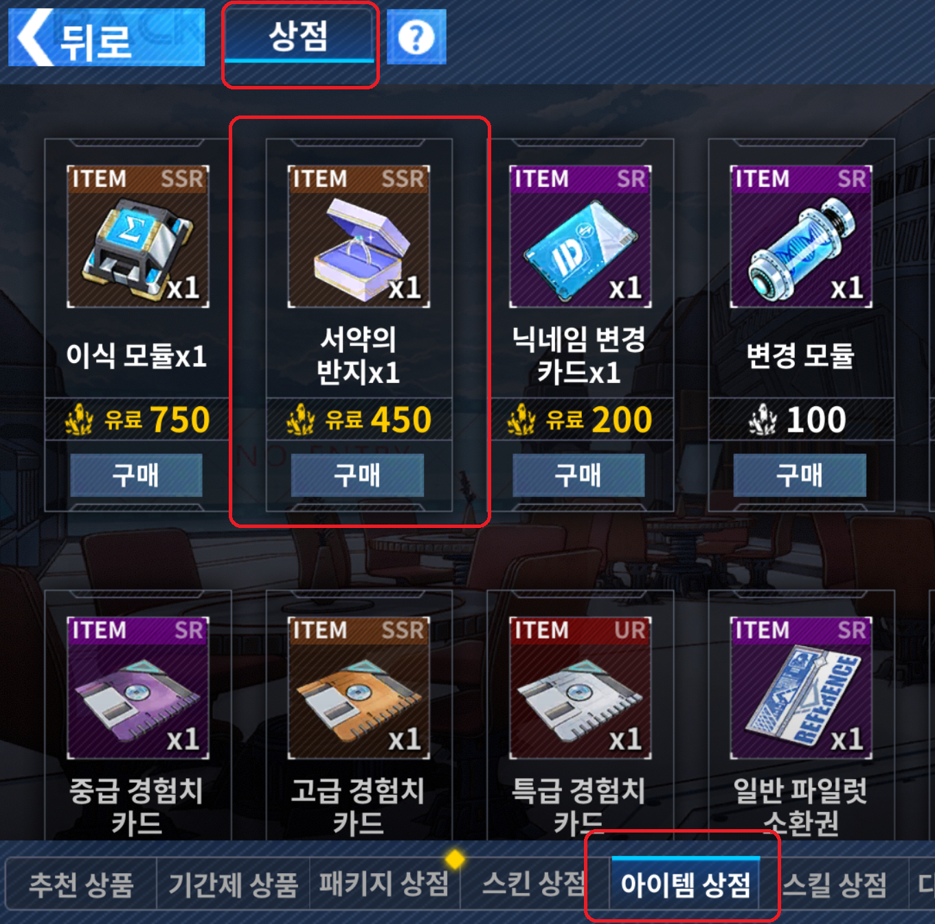 상점 > 아이템 상점 > 서약의 반지 순으로 사시면 됩니다.