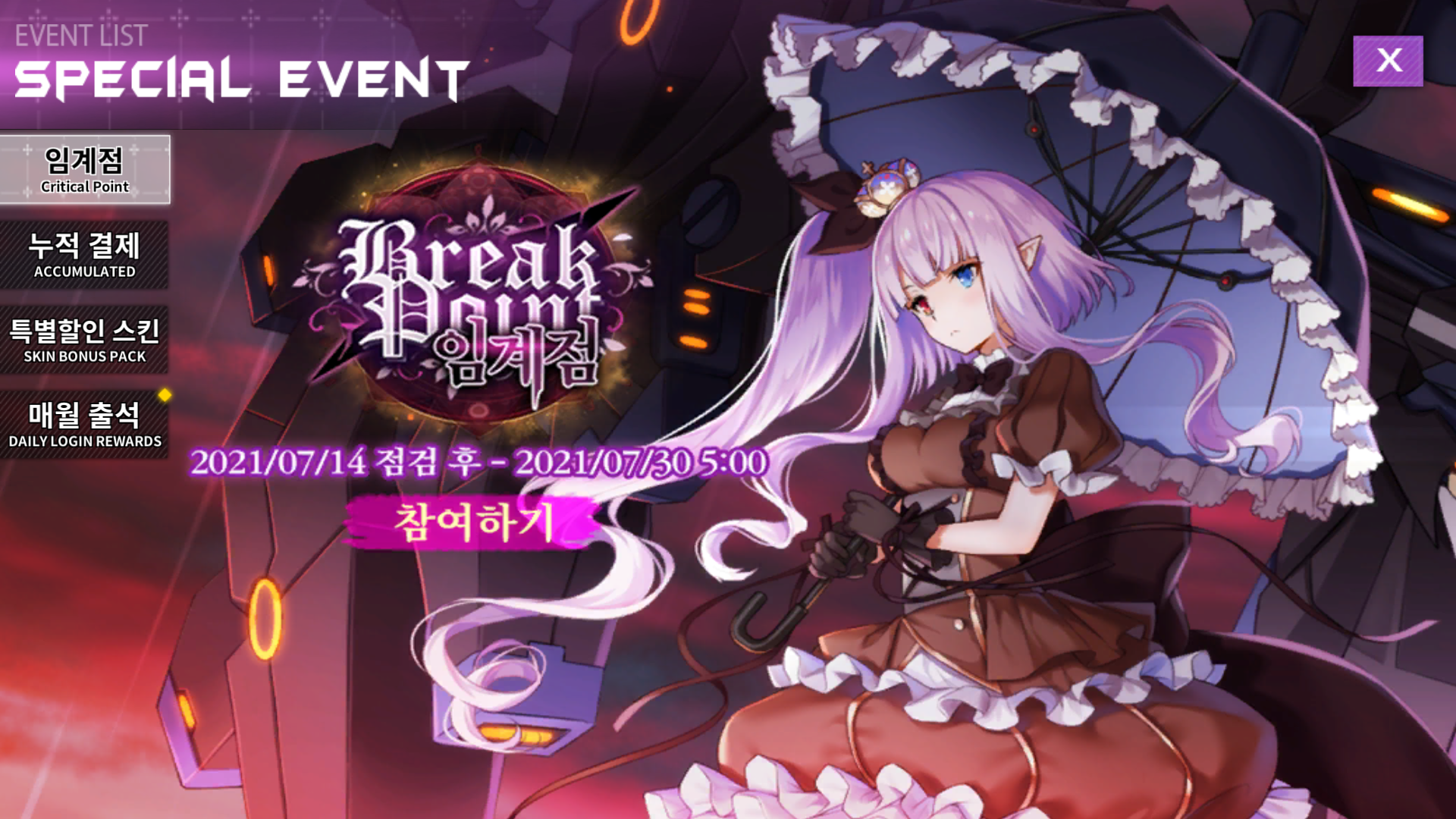 이번에 임계점 이벤트로 돌로레스 전용기를 얻을 수 있어요.
