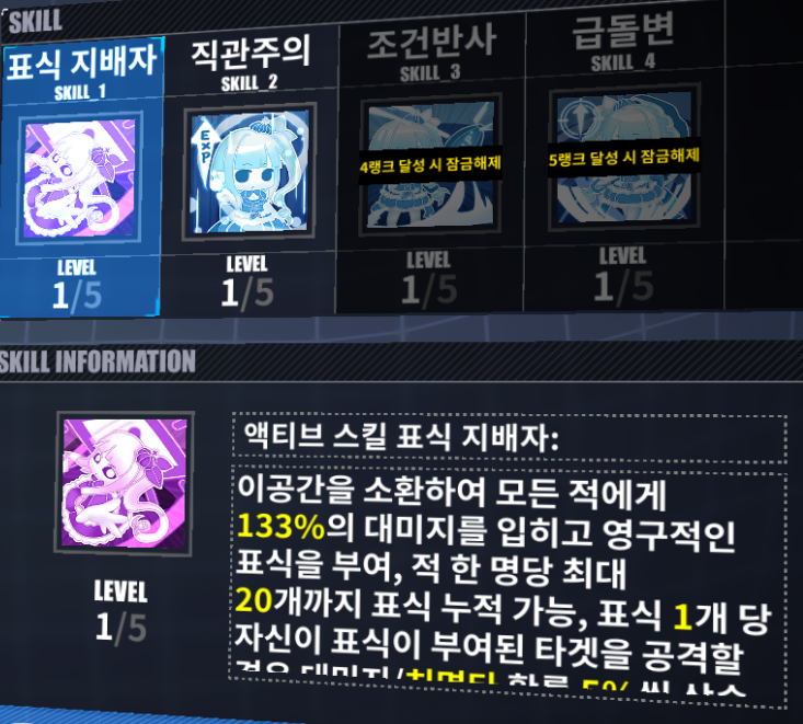표식, 마격 스타일이네요. 네 번째 패시브가 확률이긴 하지만 엄청나보입니다.
