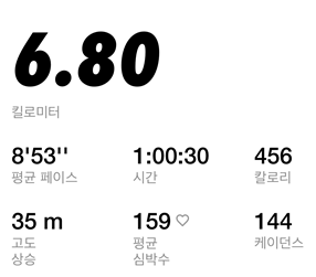 그렇게 뛰다 보니 어느새 6km를 멈추지 않고 뛰고 있는 나를 발견했다.